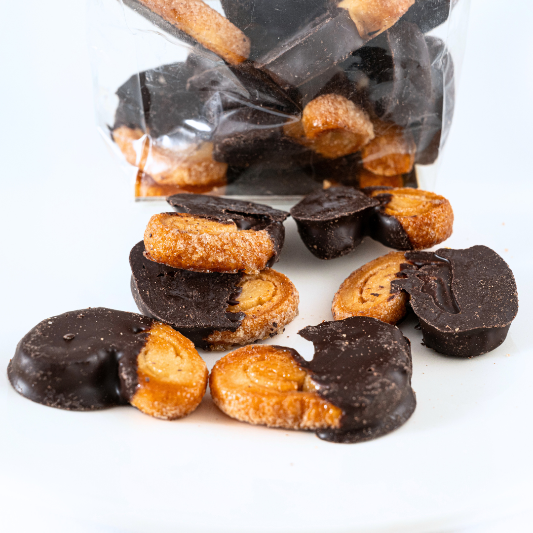 Las palmeritas de chocolate negro son el equilibrio perfecto entre tradición y sabor intenso. Su masa hojaldrada, crujiente y ligera, se funde con el carácter único del mejor chocolate negro, creando una combinación que conquista a los amantes de los dulces más exigentes.